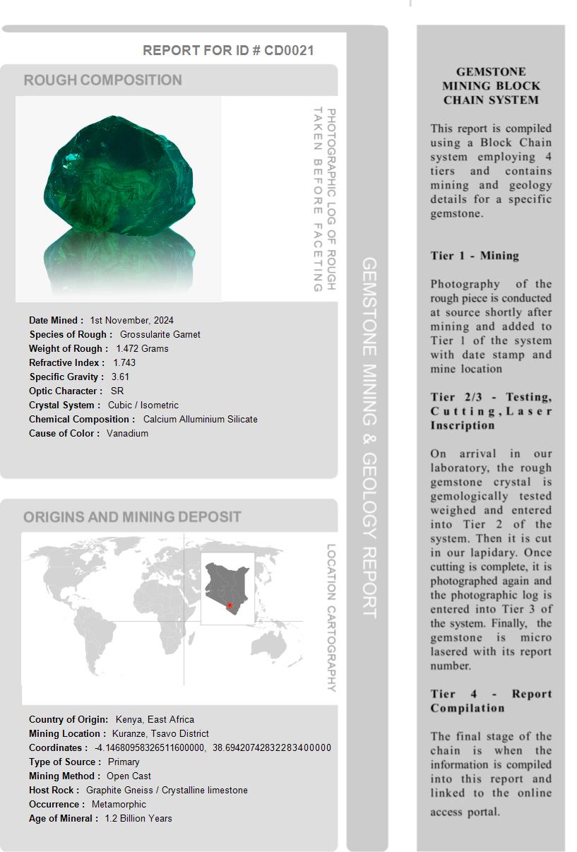 Our system records all pertinent information regarding a gemstone’s provenance which is compiled in a Provenance Report and is shipped with the gemstone