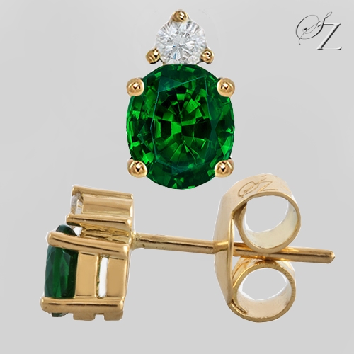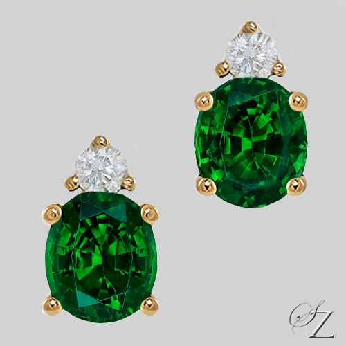 MINING & GEOLOGY REPORT View ReportThe perfect pair of studs earrings... Gorgeous green Tsavorite ovals, topped with a delicate Diamond accent to add that little extra sparkle and set in yellow gold claws.