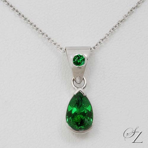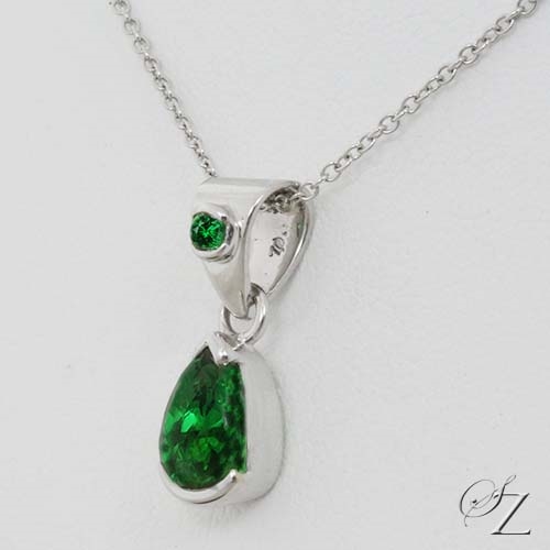 MINING & GEOLOGY REPORT View ReportI have been waiting a long time for a gorgeous 2+ carat Tsavorite pear shape to make this pendant, and here it is! Such size in Tsavorite exudes rarity and prestige that I wanted to keep the pendant uncomplicated to maximize the beauty of this exquisite stone. An equally stunning round Tsavorite in the bale intensifies the overall aura of this astounding piece. Complete with a beautiful 18 kt white gold chain.