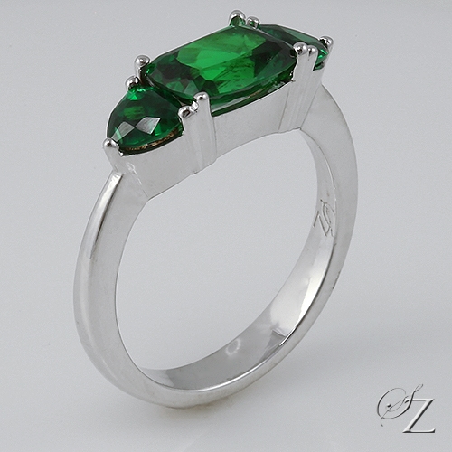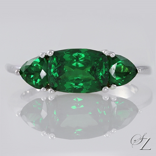 MINING & GEOLOGY REPORT View ReportA stunning bank of glowing forest green. A beautiful ring featuring a superb, flawless top grade Kenyan Tsavorite at its center nestled between a pair of gorgeous trillions to create this elegant piece.