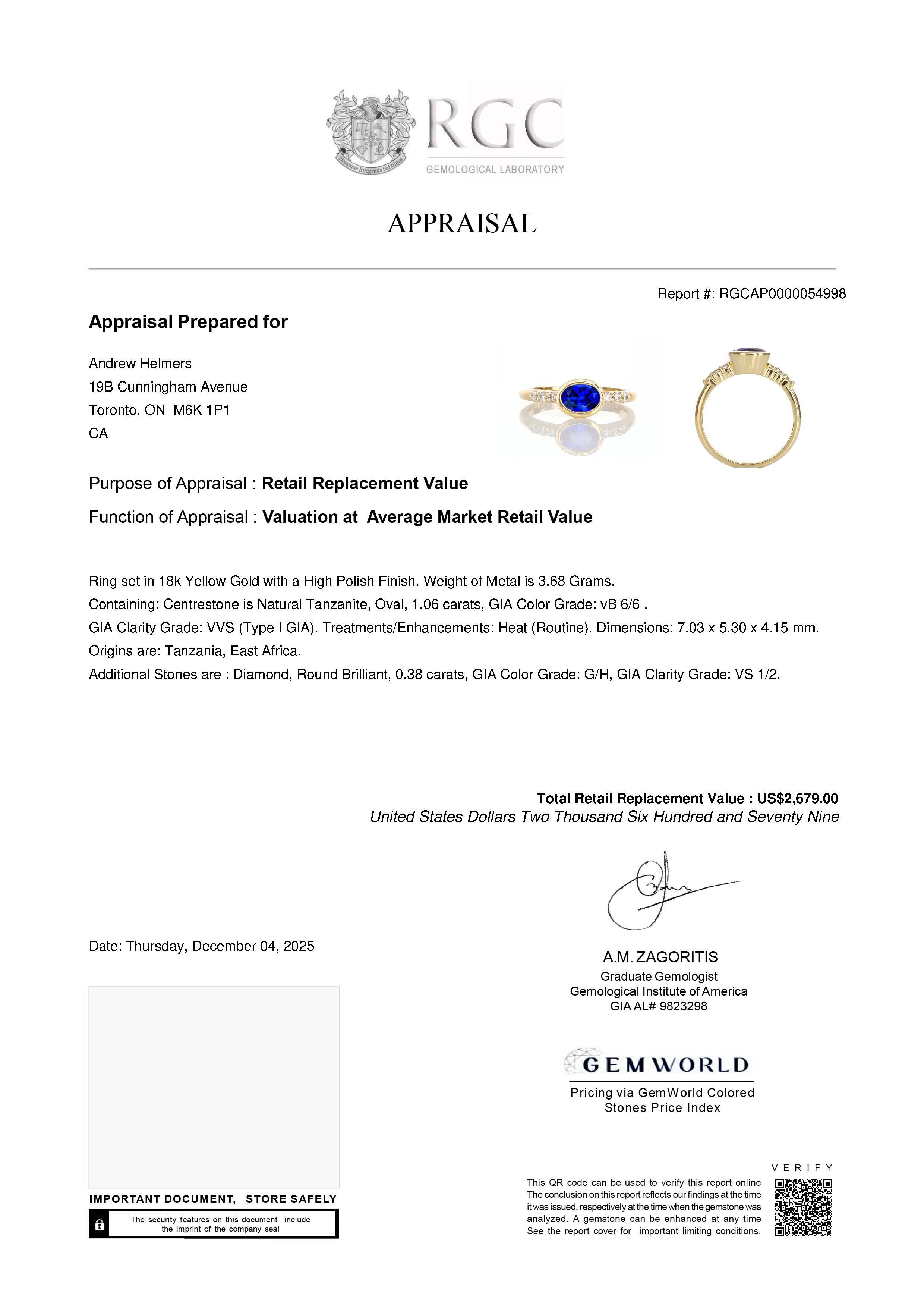 These Professional Gemological Reports will ship with the gemstone