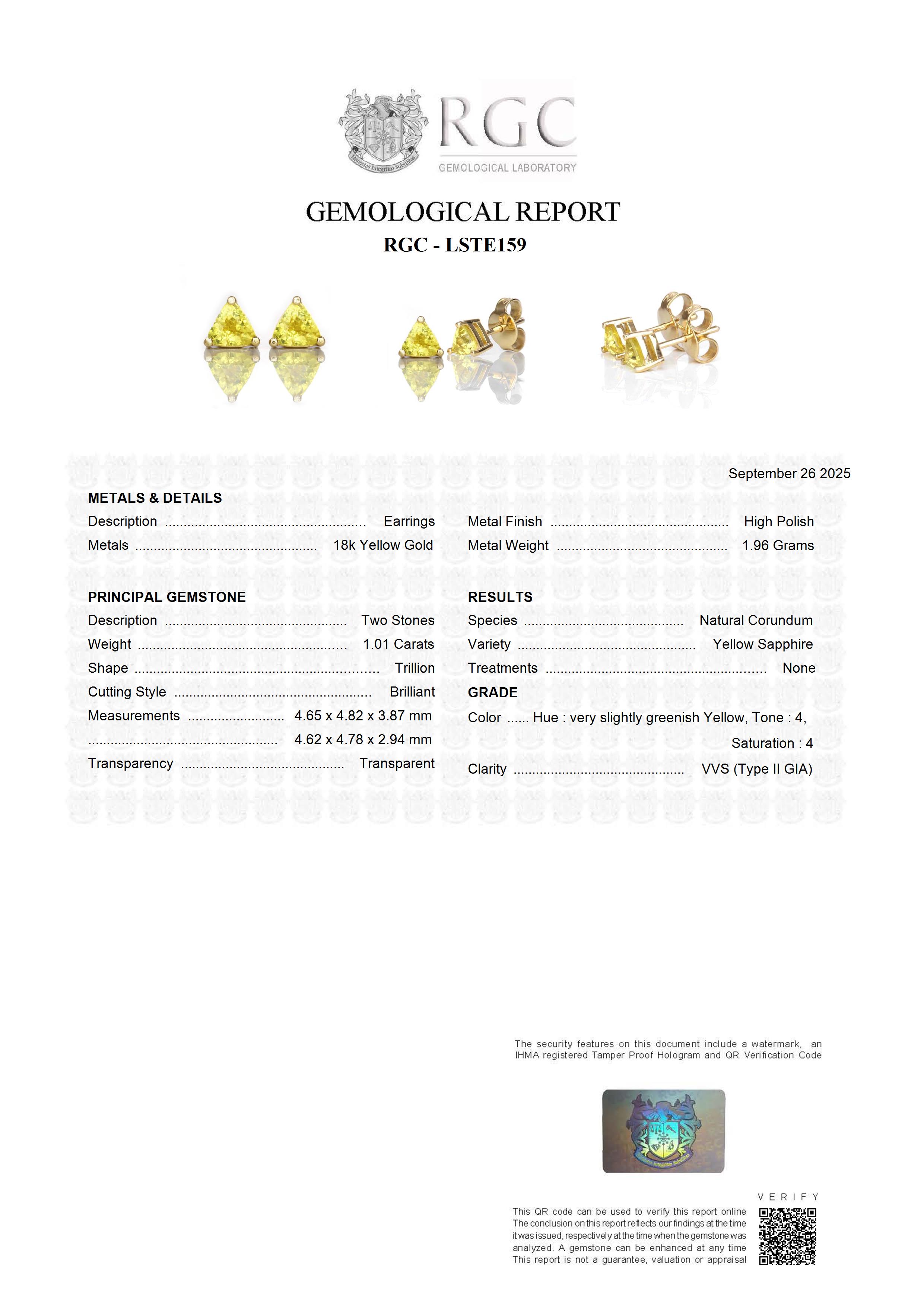 Center Stone: A very fine pair of yellow Sapphires. Completely natural, no heat, flawless and top color. It doesn't get better than that!