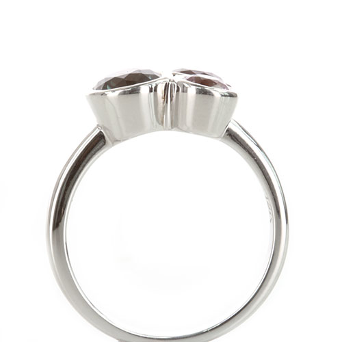 The type of metal used in the setting. In the case of gold, the quality of the metal is expressed in terms of karats. Whereas carat spelt with a “c” is a weight and used to describe gemstone weights, karat with a “k” is actually a ratio and is used to denote gold quality. 24 karat gold is pure gold. As 24 karat gold is generally considered to be too soft to be used in its pure form in jewelry, it is alloyed to make it more durable. 18 karat gold is considered by most designers to be the optimum balance of durability and quality. 18 karat gold is 18 parts gold, 6 parts alloy. 14 karat gold is 14 parts gold and 10 parts alloy and 9 karat gold is only 9 parts gold and 15 parts alloy so is actually more alloy than gold. The alloy is used to change the color. So white gold contains platinum metals like rhodium and palladium to make it look more white whilst rose gold is gold alloyed with copper to make it look more pink.