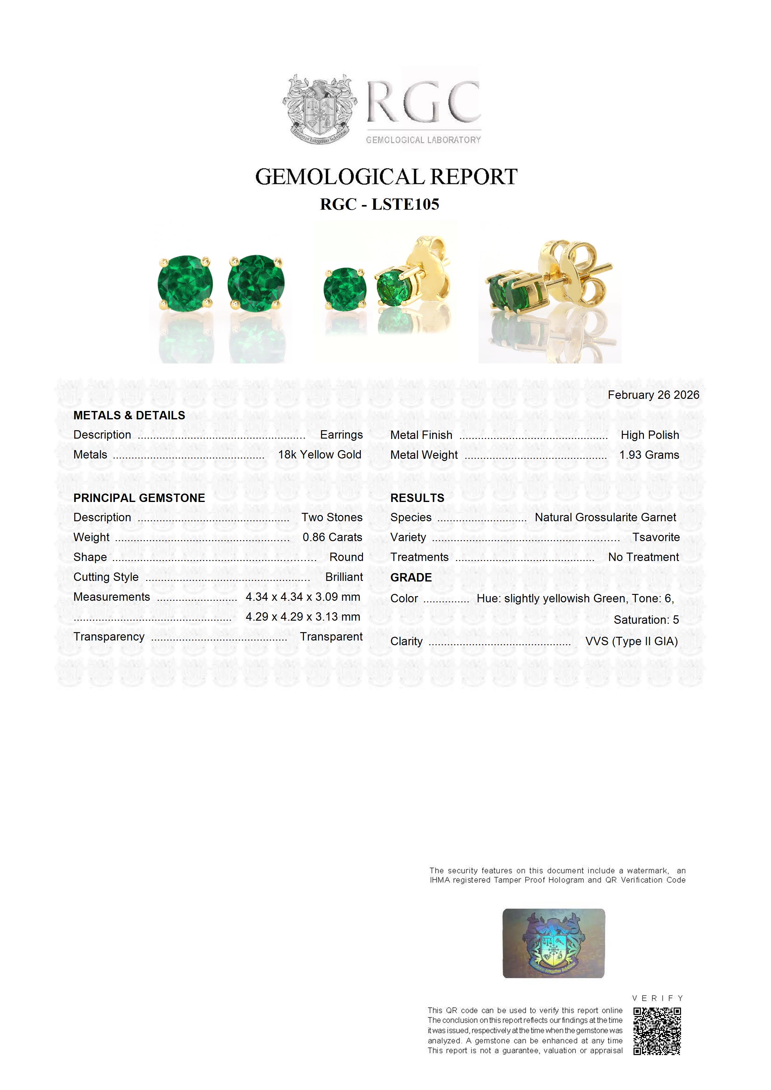 • GIA Color Grade: slyG 6/5 (Hue: slightly yellowish Green, Tone: 6, Saturation: 5)