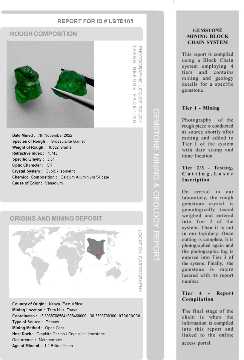 Our system records all pertinent information regarding a gemstone’s provenance which is compiled in a Provenance Report and is shipped with the gemstone
