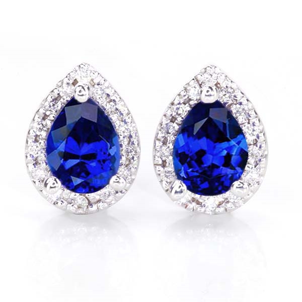 A gorgeous pair of Tanzanites, glowing with a deep, vivid blue that emanates from deep within, encased in a glittering halo of fine white Diamonds. Stunning!